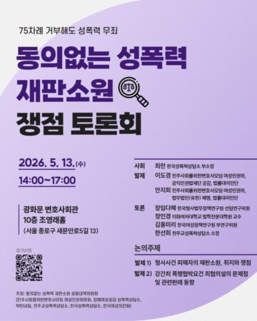 📌주관: 동의없는 성폭력 재판소원 공동대책위원회 (민주사회를위한변호사모임 여성인권위원회, 장애여성공감 성폭력상담소, 탁틴내일, 천주교성폭력상담소, 한국성폭력상담소, 한국여성의전화)