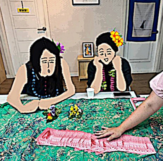 마나카드를 통해 하와이 문화를 알게되니 흥미로워, 하와이의 대표적인 춤인 훌라를 알아보았습니다. 활동가가 선보이는 훌라를 보며 희망과 사랑을 품은 노래에 맞춰 몸으로 자연스럽게 표현해보았어요. 이야기하듯 부드럽게 움직이는 몸을 보며 함께 움직이고 싶은 의욕을 가져볼 수 있었습니다. 이어지던 어설프지만 즐거운 춤판은 비밀 (^^;;)