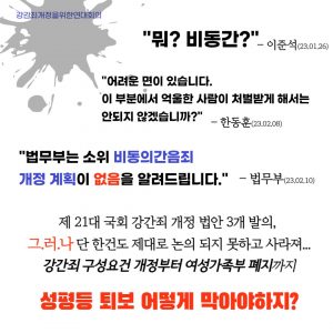 강간죄 구성 요건을 폭행.협박에서 동의 여부로 바꾸고 성평등 전담부처 강화에 함께 할 우리동네 국회의원 후보 찾기