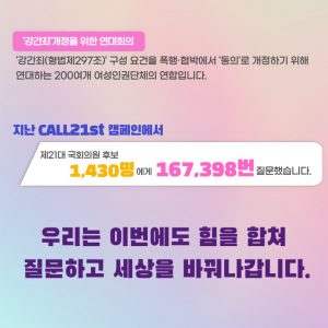 강간죄 구성 요건을 폭행.협박에서 동의 여부로 바꾸고 성평등 전담부처 강화에 함께 할 우리동네 국회의원 후보 찾기