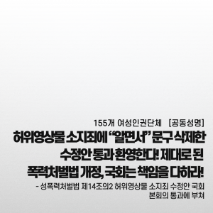 [공동성명] 허위영상물 소지죄에 “알면서” 문구 삭제한 수정안 통과 환영한다! 제대로 된 성폭력처벌법 개정, 국회는 책임을 다하라!