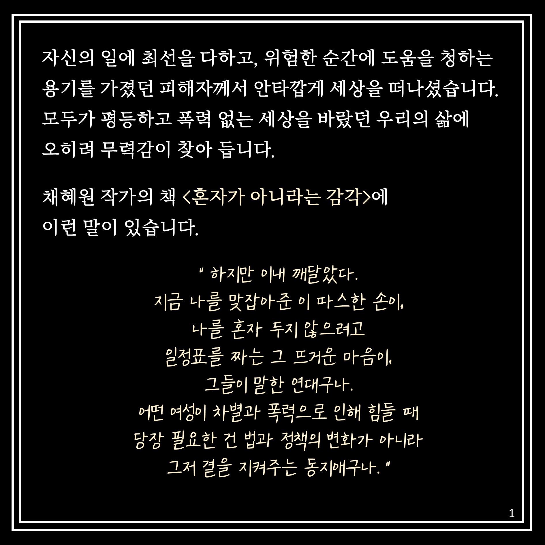 매 순간 최선의 삶을 사셨을 피해자를 애도합니다.