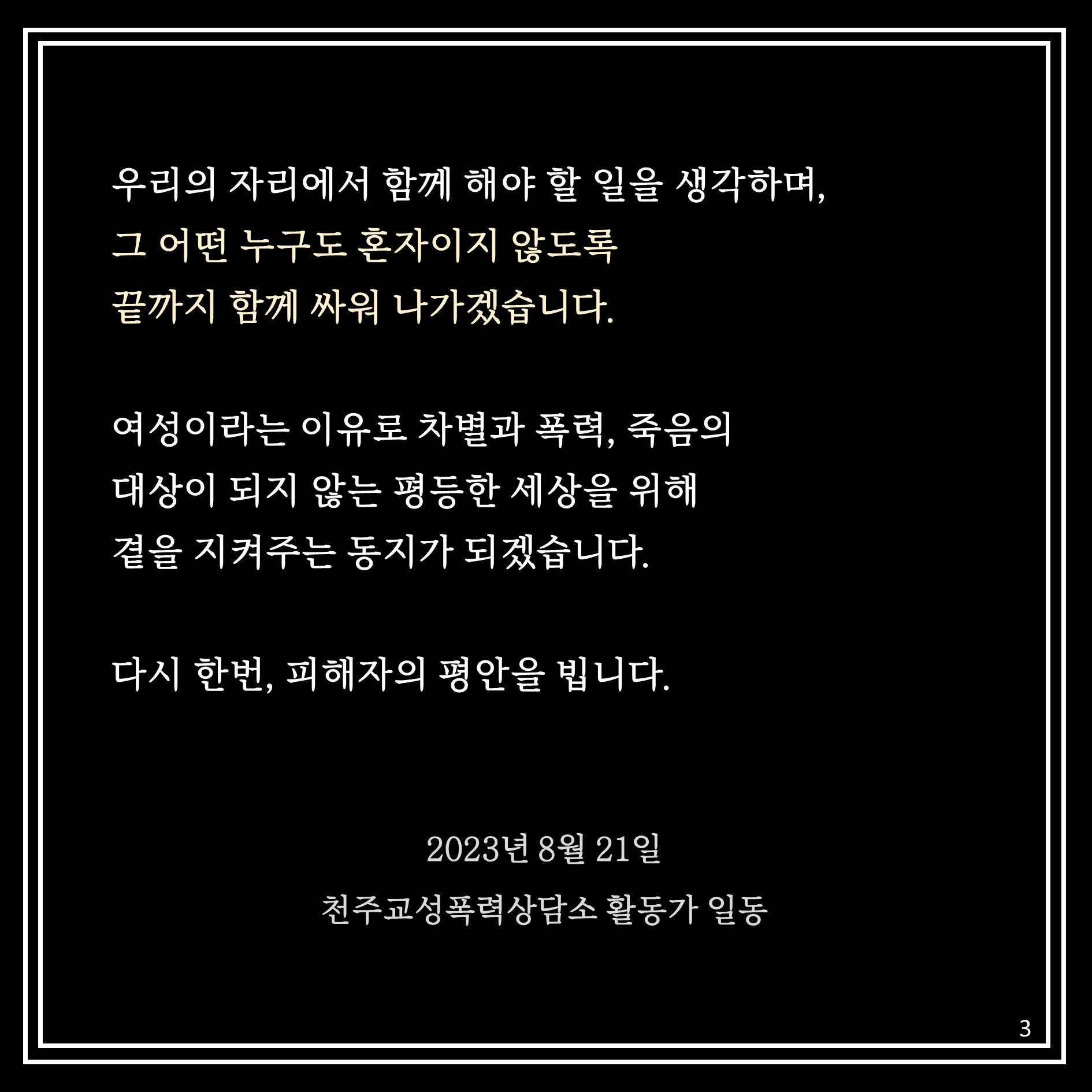 매 순간 최선의 삶을 사셨을 피해자를 애도합니다.