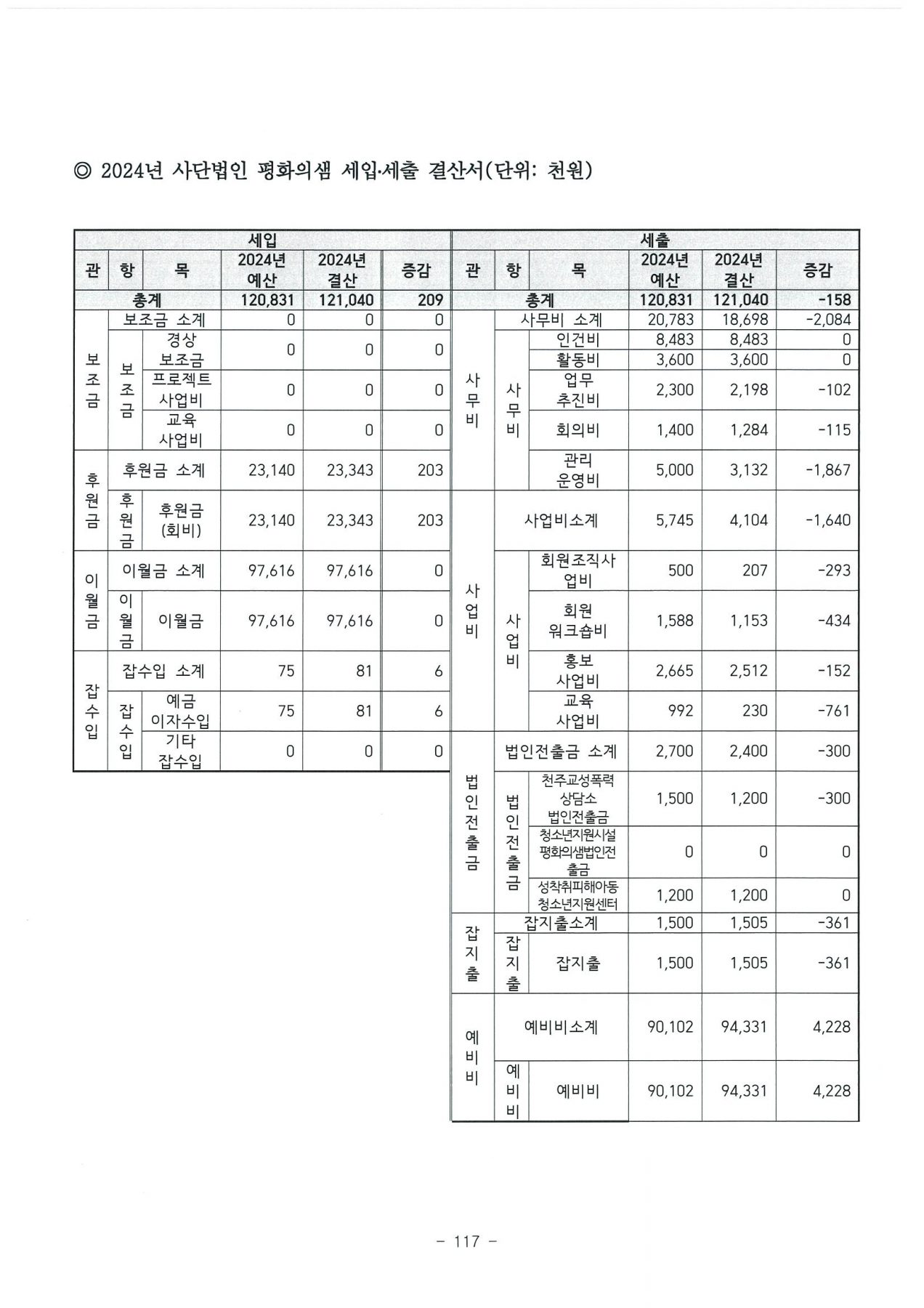2024년 사단법인 평화의샘 결산서