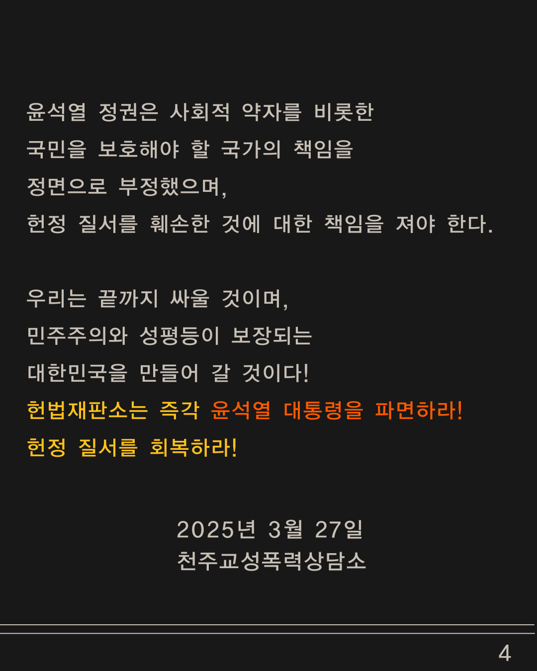 [성명] 더 이상 지체할 시간이 있는가? 헌법재판소는 윤석열 대통령을 즉각 파면하라!