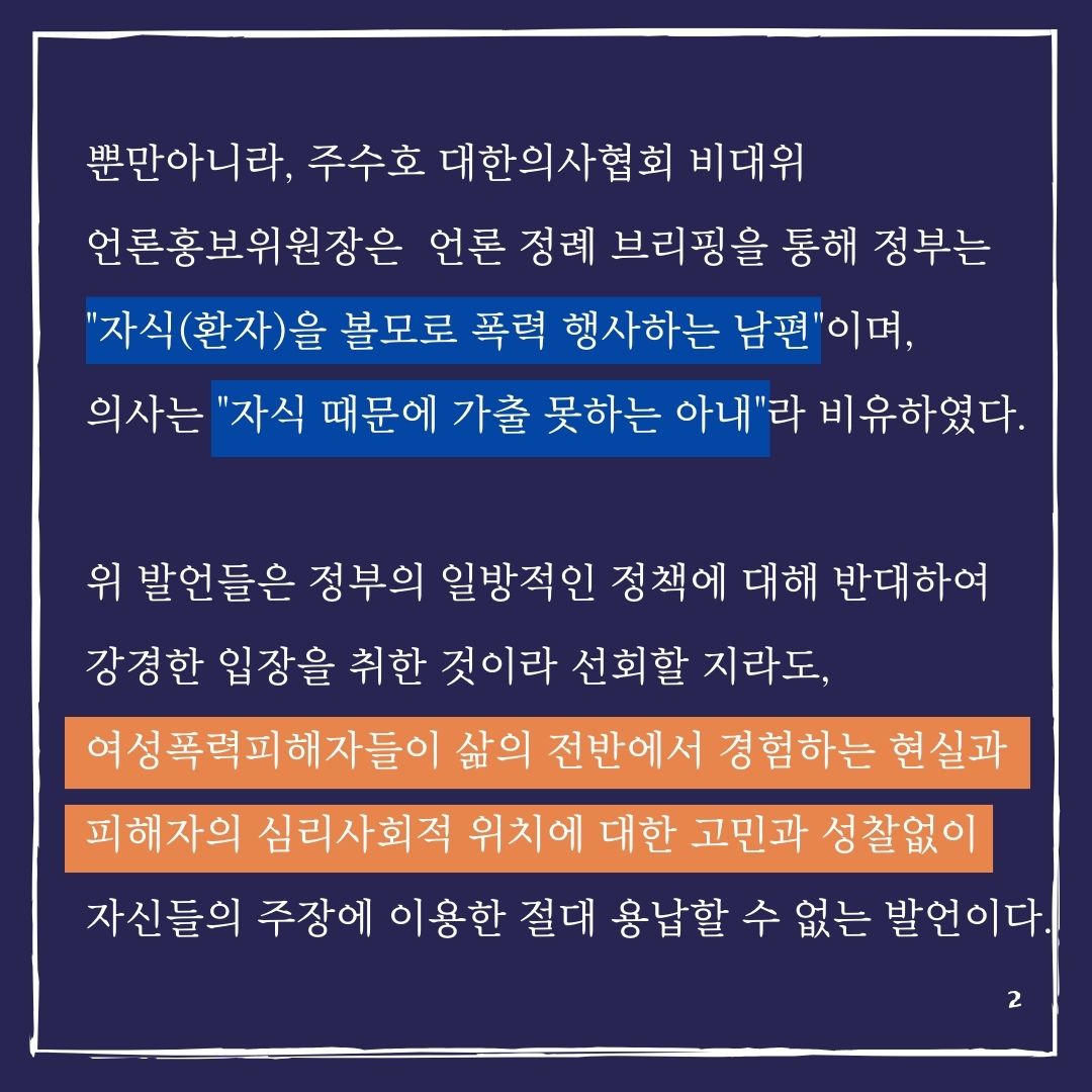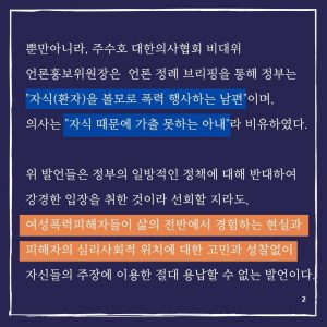 [성명] 여성폭력피해 현실을 외면하고 오용한 ‘서울시의사회의’ 발언을 규탄한다!