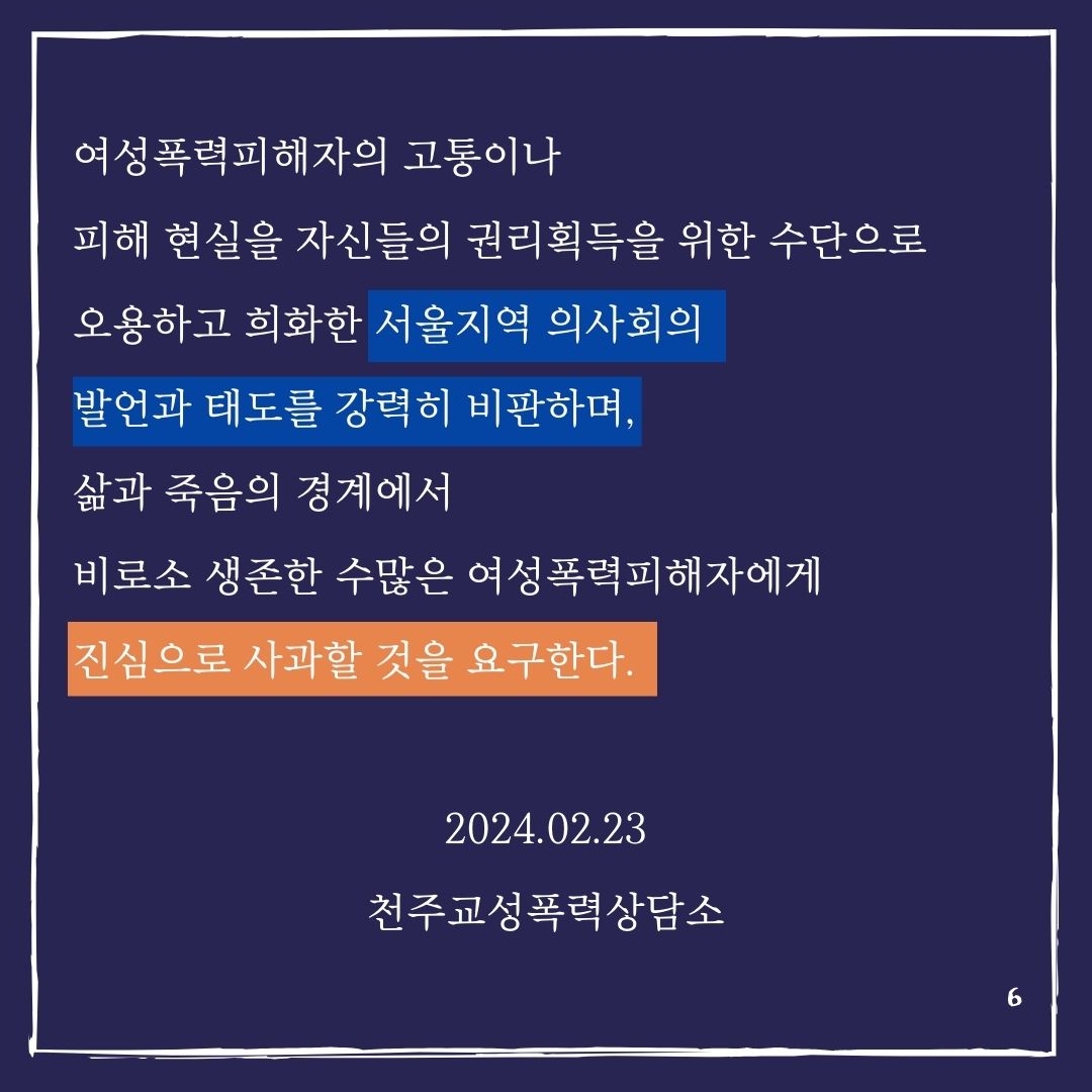 [성명] 여성폭력피해 현실을 외면하고 오용한 ‘서울시의사회의’ 발언을 규탄한다!