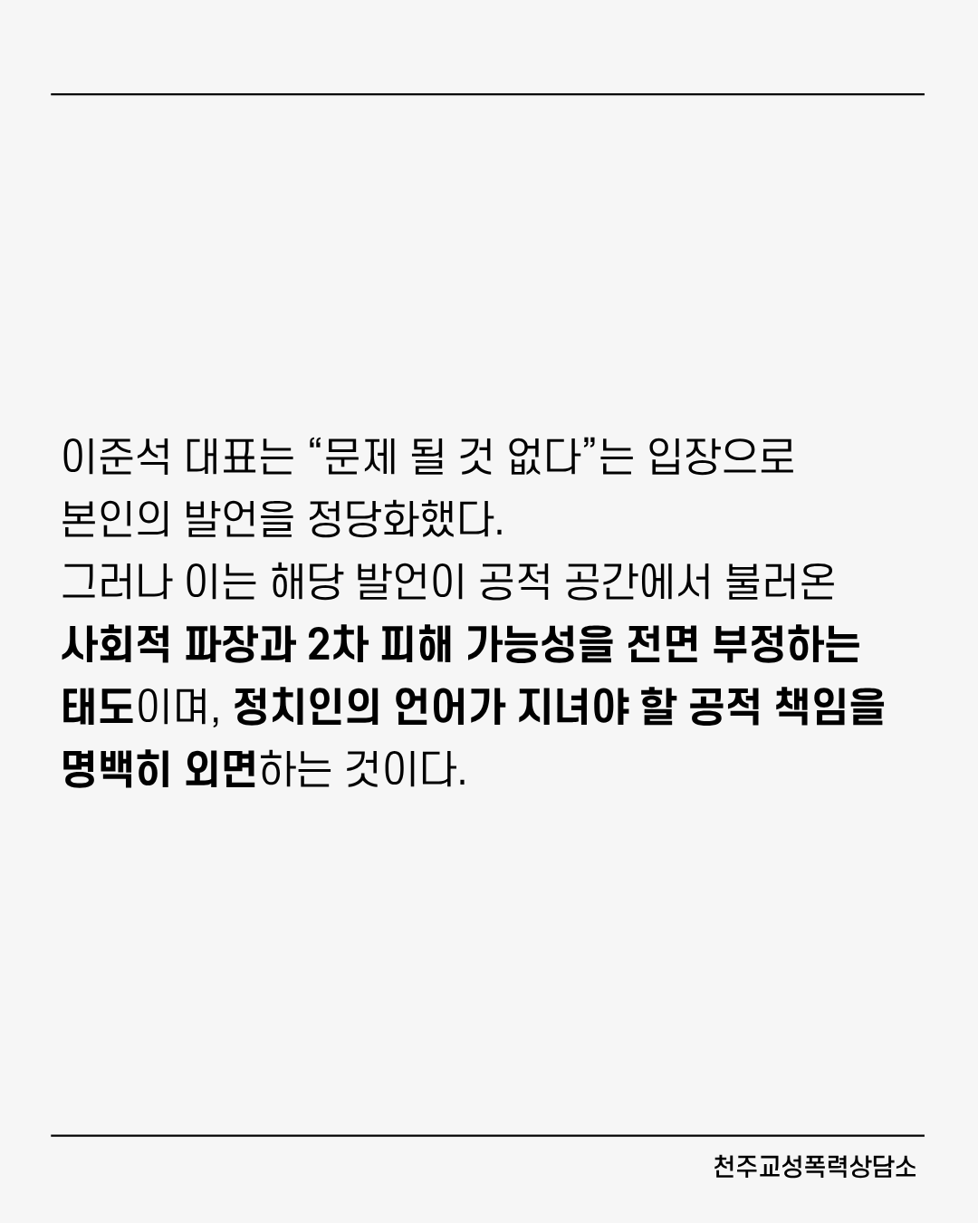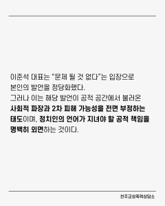 [성명] 이준석 대표의 성폭력 재현 발언 불송치 결정, 책임은 끝나지 않았다