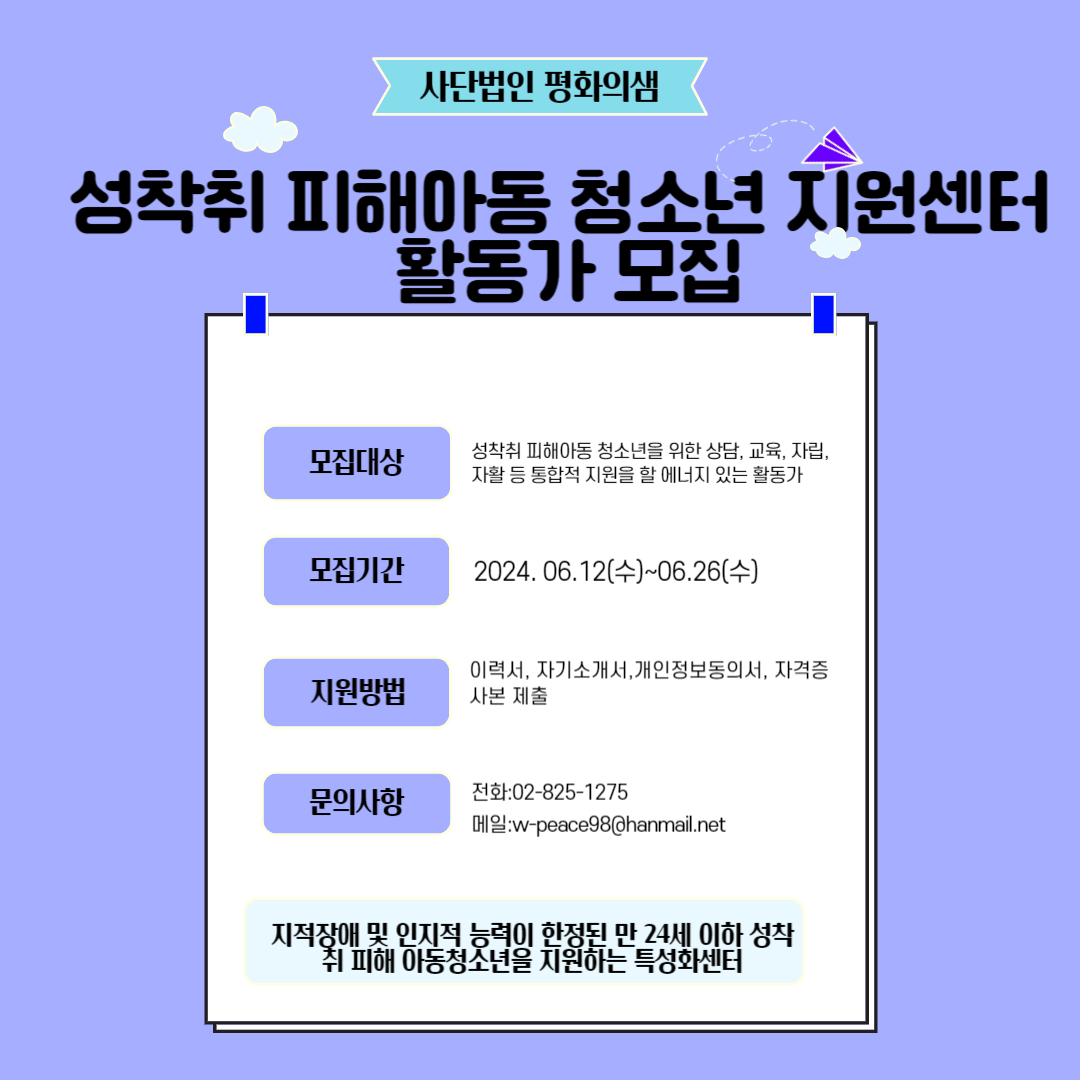 성착취 피해아동 청소년지원센터 띠앗 신규 활동가 모집