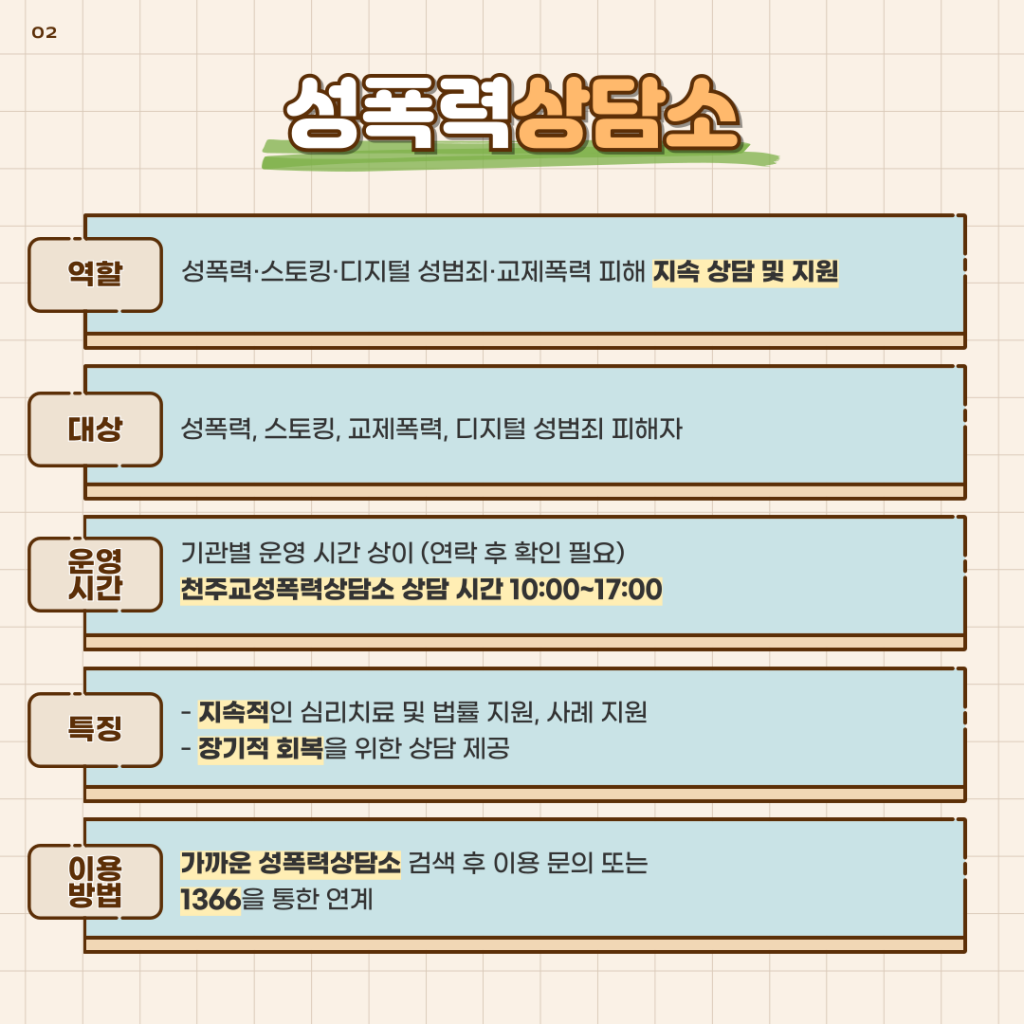 👉 성폭력상담소 (장기적 지원 및 회복 상담)