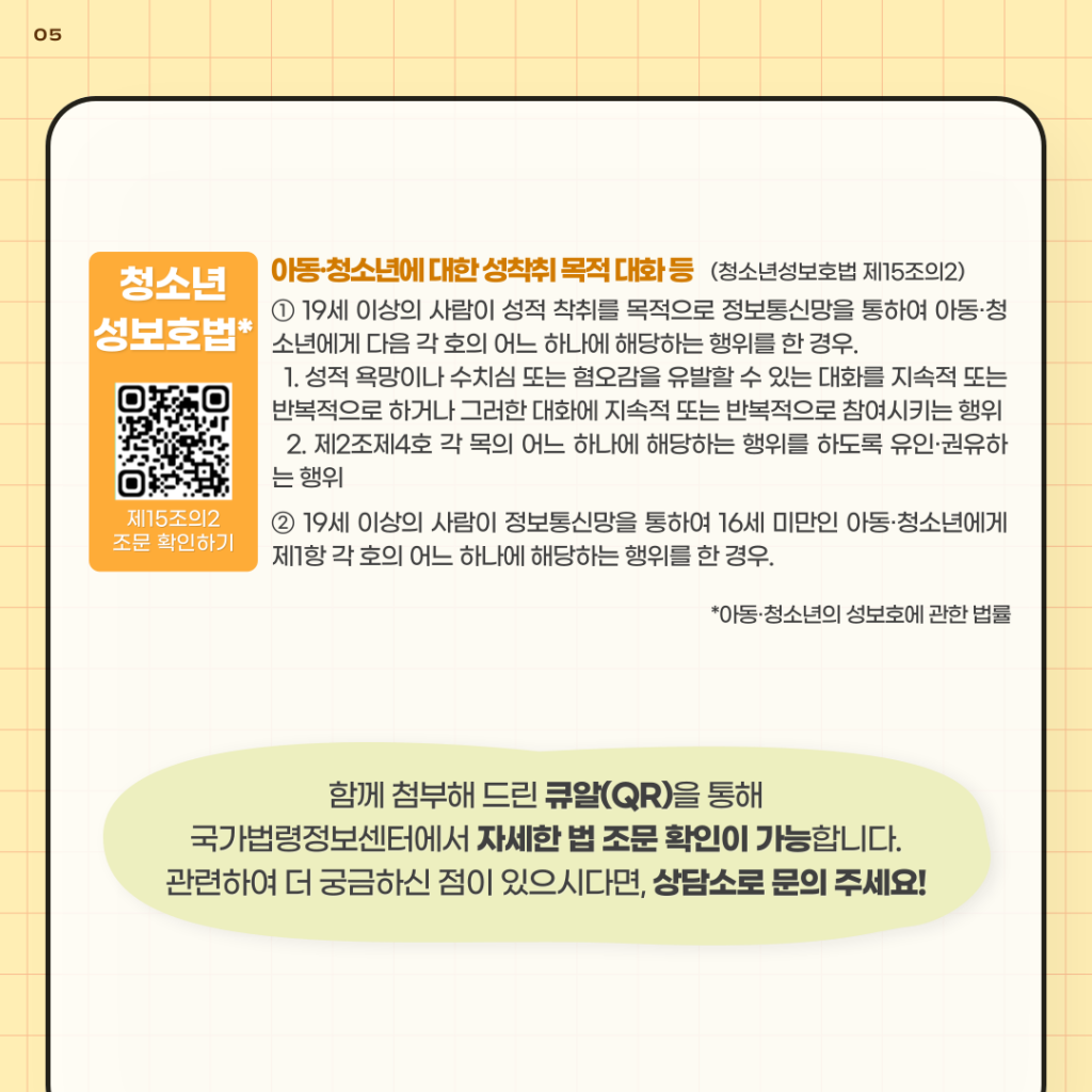 ✅ 아동·청소년에 대한 성착취 목적 대화 등(청소년성보호법 제15조의2)
