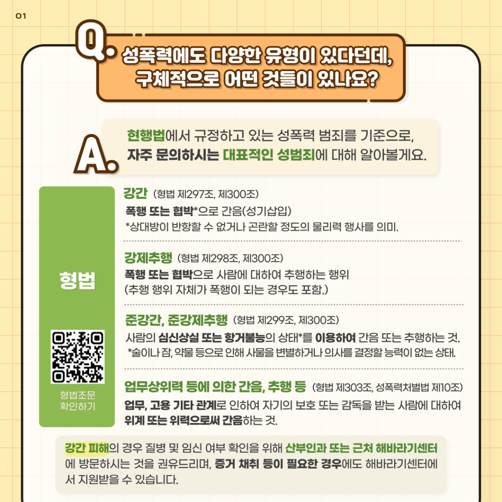 Q. 성폭력에도 다양한 유형이 있다던데, 구체적으로 어떤 것들이 있나요?