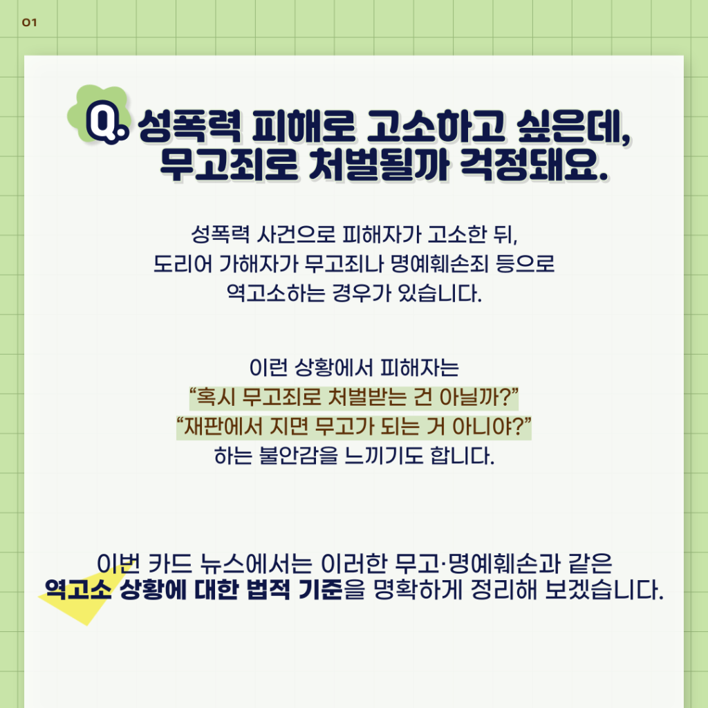 Q. 성폭력 피해로 고소하고 싶은데, 무고죄로 처벌될까 걱정돼요.