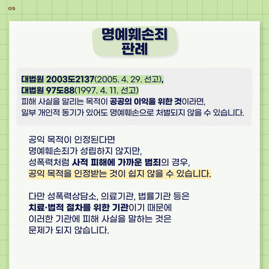 ☝️ 공익 목적이 인정된다면 명예훼손죄가 성립하지 않지만,