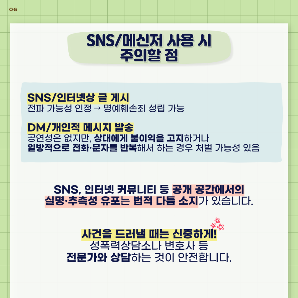 SNS, 인터넷 커뮤니티 등 공개 공간에서의