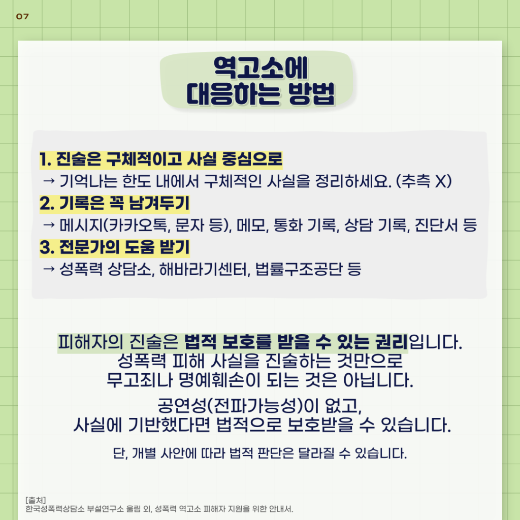 [출처] 한국성폭력상담소 부설연구소 울림 외, 성폭력 역고소 피해자 지원을 위한 안내서.