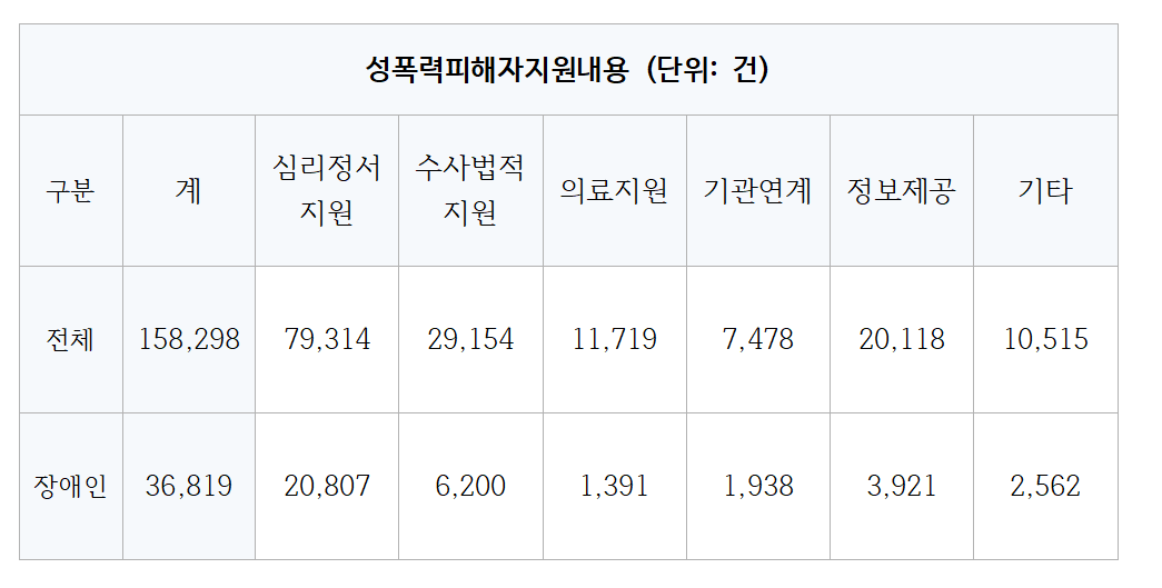 전국성폭력상담소협의회 2022년 성폭력 피해자 지원 현황