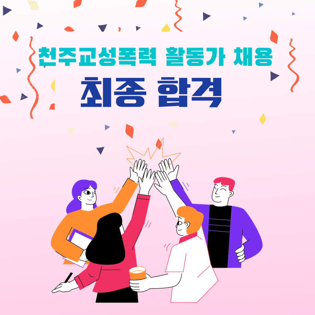 <천주교성폭력상담소 활동가 최종합격 발표> 최종합격자 김*혜 천주교성폭력상담소활동가 채용에 관심 가져주신 모든 분들께 진심으로 감사드립니다. 사단법인평화의샘2024년 06월 21일2024년 06월 21일공지사항