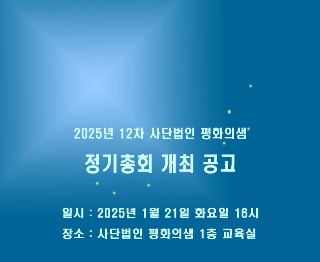 • 주 제 : 2025년 12차 사단법인 평화의샘 정기총회